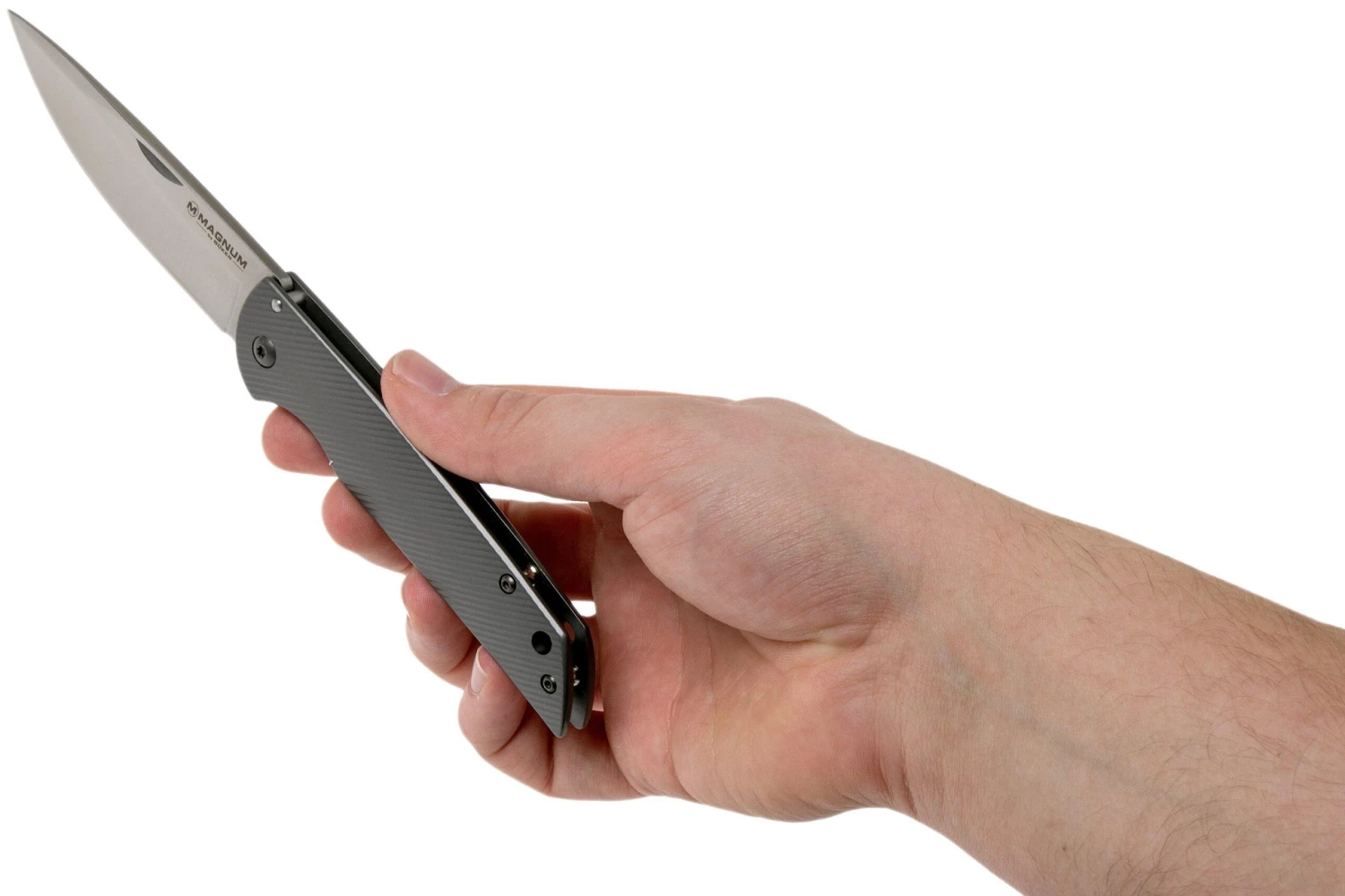 Das Böker Magnum Eternal Classic 01RY321 ist ein praktisches EDC-Taschenmesser, das sich auch toll als Herrenmesser macht. Der Griff aus Edelstahl ist mit einem schönen Muster versehen. Dieses sieht aber nicht nur schön aus, sondern sorgt auch noch für einen guten Halt. Du kannst das Messer für alle täglich anfallenden Aufgaben benutzen. Zum Öffnen benötigst Du beide Hände, anschließend wird die Klinge von einem Frame-Lock verriegelt. Die Klinge aus 440A-Stahl lässt sich leicht schleifen und ist nicht sehr anfällig für Rost. Ein gutes Messer zu einem guten Preis.