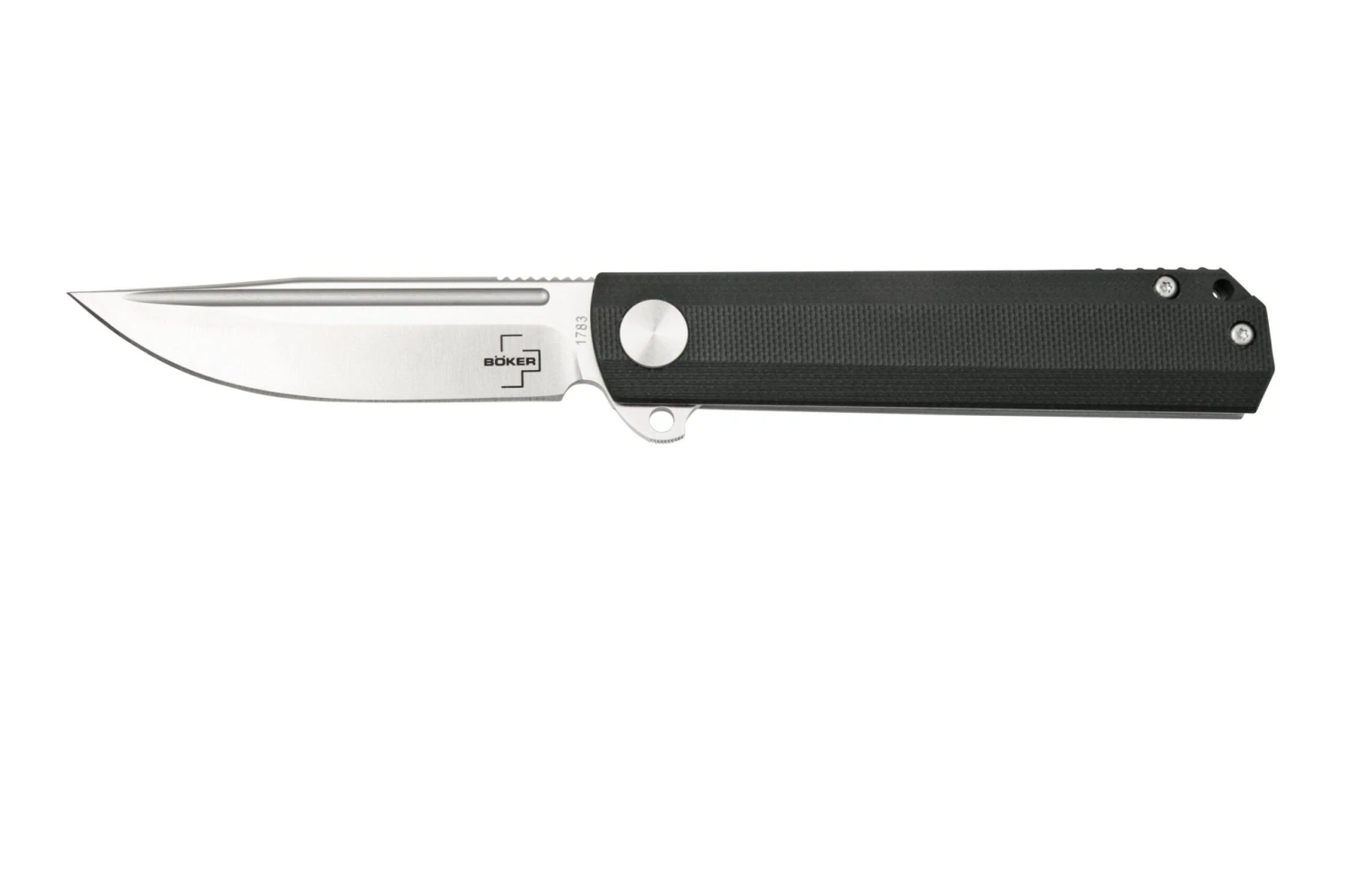 Das Böker Plus Cataclyst 42 01BO675 ist ein cooles und leichtgewichtiges EDC-Taschenmesser. Das Design ist langgezogen und gradlinig. Auffällig ist der coole fuller in der Klinge, die Hohlkehle in der Klinge. Das Messer kannst Du rasend schnell mithilfe des Flippers öffnen. Die Kugellager sorgen für einen ruhigen Lauf.