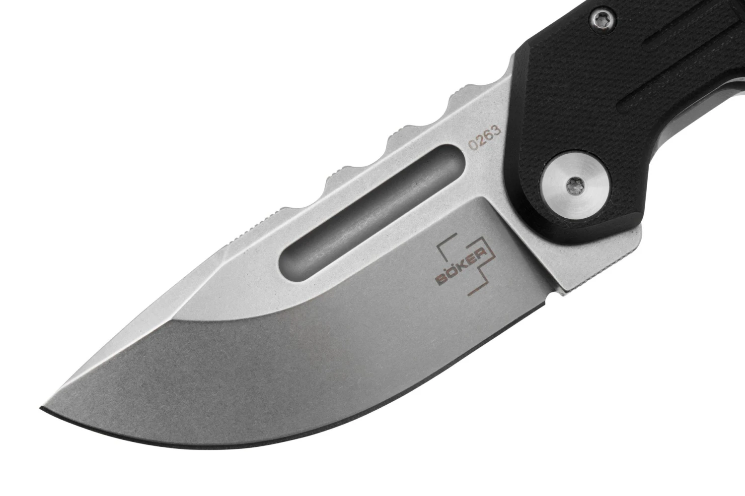 Das Böker Plus Dvalin Folder Drop 01BO548 ist ein cooles, feststehendes Taschenmesser, das von Dirk Hofmeister von Midgards Messer entworfen wurde. Es ist der Sidekick des Little Dvalin, einem feststehenden Messer. Benutze es zum Öffnen von Verpackungen, zum Zerschneiden von Altpapier, für ein Picknick, in der Küche oder als Back-up im Rucksack. Dieses Messer ist vielseitig einsetzbar. Die deutlichen Vertiefungen an den Seiten dienen als Nailnick zum Öffnen des Taschenmessers. Die Jimpings auf der Oberseite der Klinge bieten einen guten Halt für feinere Schneidearbeiten. Ein Framelock verriegelt die Klinge während des Gebrauchs.