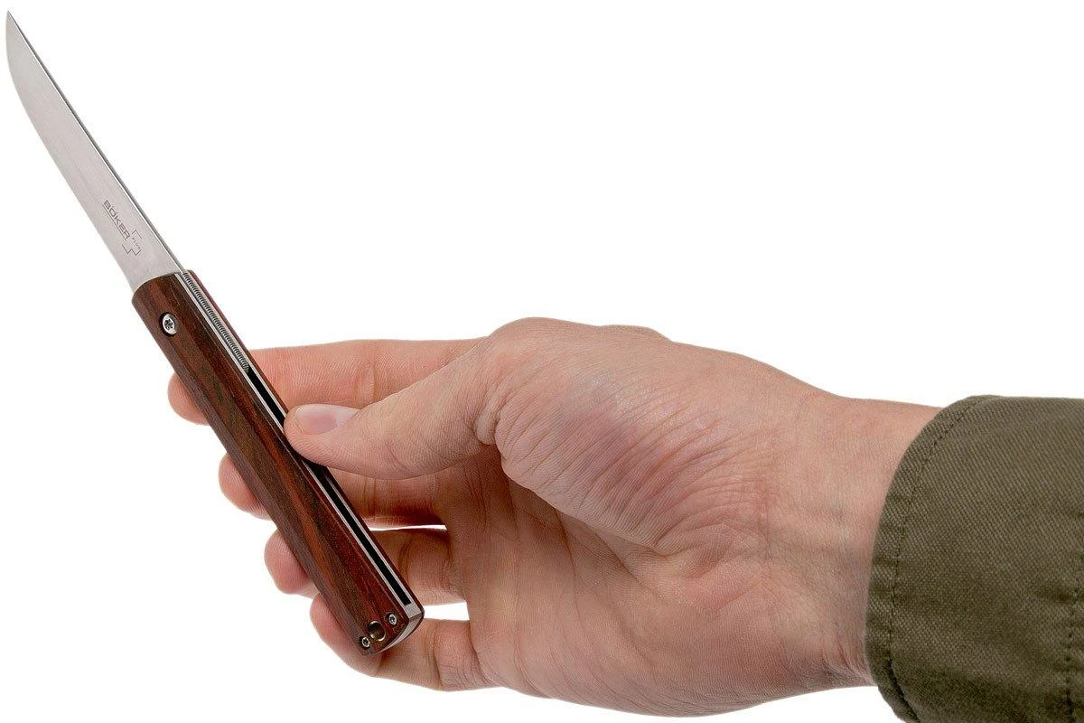 Das Böker Plus Wasabi Cocobolo 01BO631 ist ein sehr leichtgewichtiges Herrenmesser, das von Kansei Matsuno entworfen wurde. Dieser japanische Messermacher ist bekannt für die einzigartige Kombination aus traditioneller, japanischer Messerherstellung und modernen Techniken. Dieses Böker Wasabi ist dafür ein perfektes Beispiel.