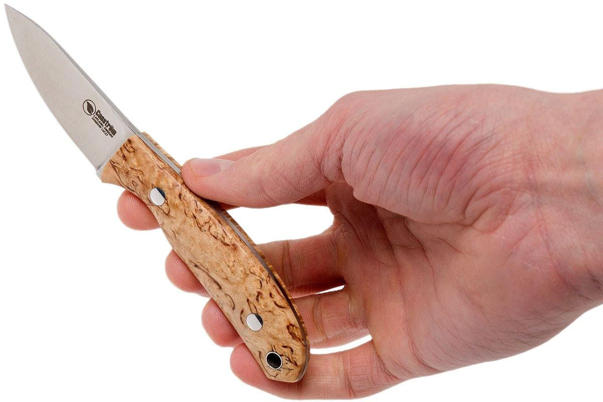 Casström Woodsman Knife Curly Birch, Sleipner Scandi Grind 10804