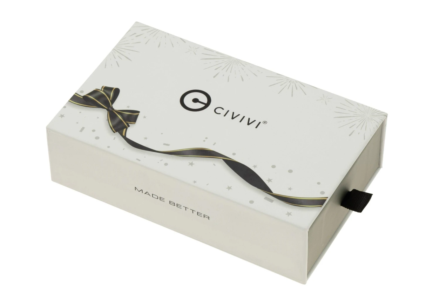 Das Civivi Elementum II Button Lock und der StellarQuill Stift sind ein schmales EDC-Taschenmesser und praktischer Stift. Ein praktischer Begleiter für jeden Tag! Die runden Formen und der reibungslose Lauf des Taschenmessers sorgen dafür, dass jeder dieses Messer zu schätzen weiß. Dies ist die zweite Version des Elementum Button Lock. Die Klinge ist etwas kleiner als beim Original Button Lock. Außerdem verfügt es über einen Flipper, mit dem sich das Elementum II noch leichter öffnen lässt. Der Buttonlock-Mechanismus blockiert das Messer vollständig in geöffnetem Zustand und zum Teil, wenn es geschlossen ist. Der Civivi StellarQuill Stift ist aus leichtem Aluminium gefertigt. Im Lieferumfang sind zwei Nachfüllpatronen für den Stift enthalten.