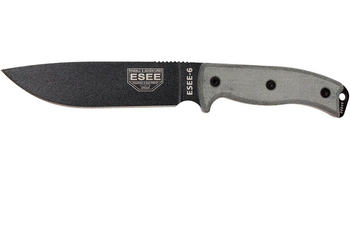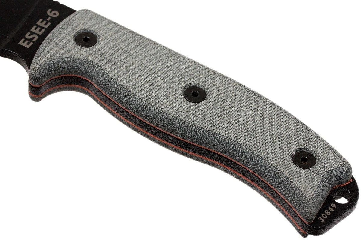 ESEE Model 6 Tactical Gunsmoke, Grauer Handgriff 6P-TG Mit Schwarzer Scheide + Gürtelclip