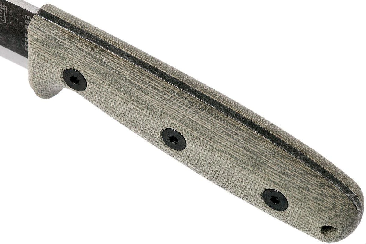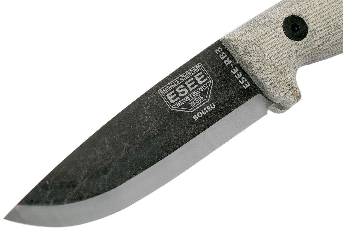 Das ESEE RB3 ist ein besonders feines Bushcraft-Messer aus der Camp-Lore-Serie und wurde von Reuben Bolieu entworfen. Dieses Messer eignet sich hervorragend für kleinere Arbeiten und zur feinen Holzbearbeitung. Der Micarta-Griff füllt die Handinnenfläche voll aus (auch bei größeren Händen) und sorgt für perfektes Gripniveau und Griffsicherheit um die rasiermesserscharfe Klinge zielgenau und sicher führen zu können. Der Full Tang oder auch Vollerl genannt (Messerform, bei der das Messer aus einem durchgehenden Stück Stahl gefertigt ist), ist aus 1095-Kohlenstoffstahl. Im Gegensatz zu vielen anderen ESEE Messern aus Kohlenstoffstahl, hat dieses Messer keine beschichtete sondern eine stonewashed Klinge. Das sieht sehr cool aus, ist aber anfälliger für Rost. Trocknen Sie das Messer nach Gebrauch gut ab. Ab und zu als Pflege ein paar Tropfen Öl und das Messer bleibt viele Jahre ein treuer Begleiter. ESEE hat die Klinge nicht beschichtet, so dass sich auf der Klinge eine eigene Patina entwickeln kann.