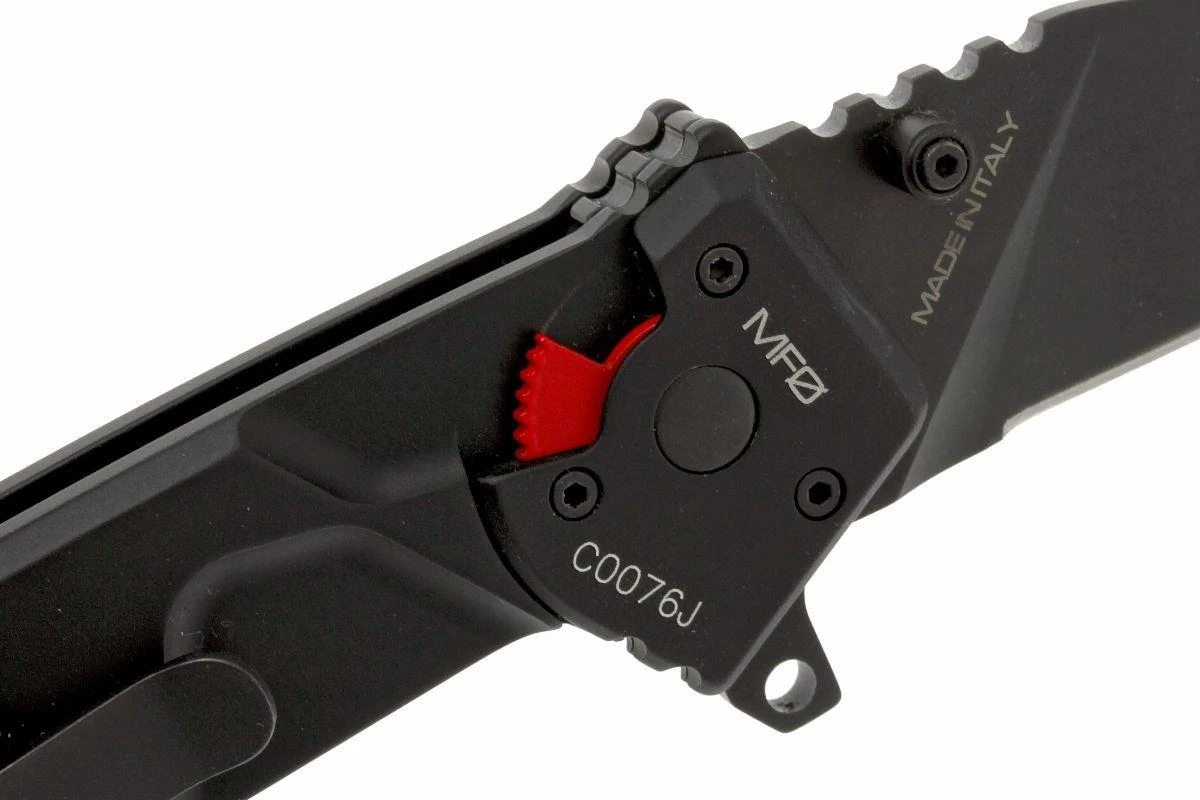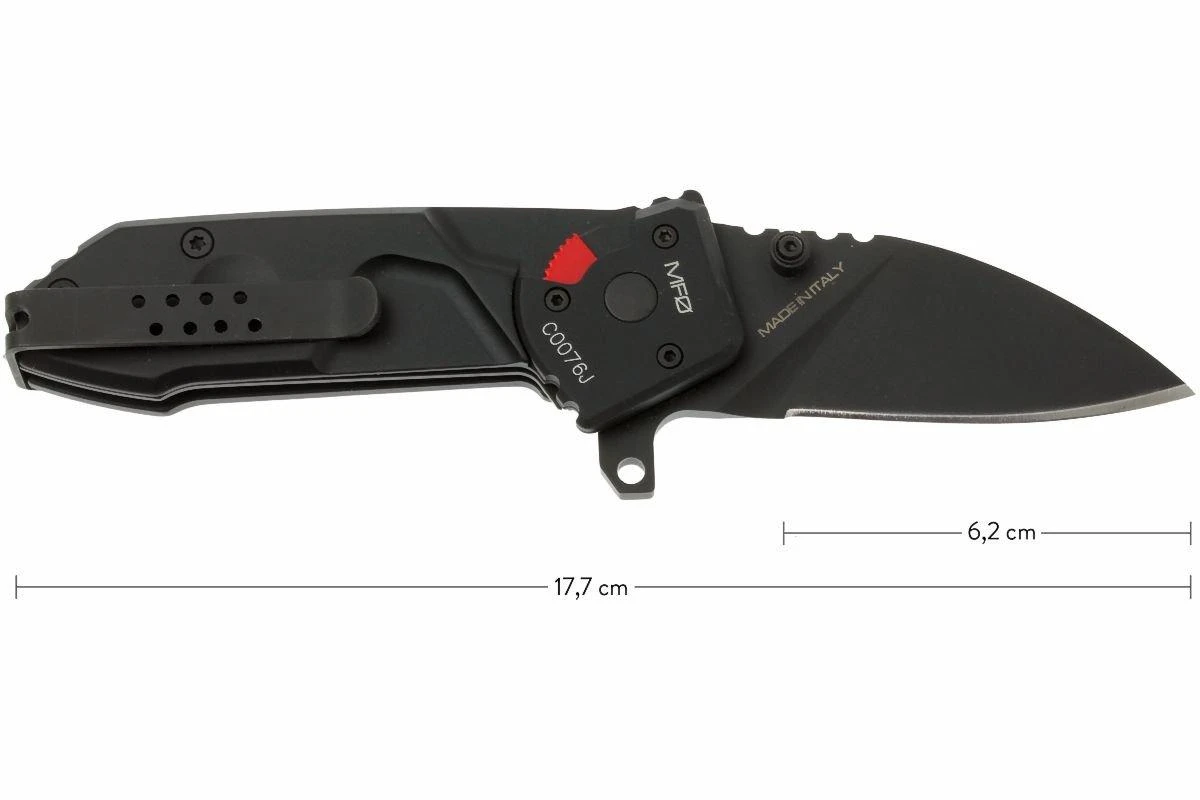 Mit dem MFO hat Extrema Ratio MF0 eine kleinere Version des MF2 erstellt. Mit diesen Abmessungen ist es sehr gut geeignet als EDC-Messer oder als Backup. Der Griff des MF0 ist mit einem Sub-Hilt ausgestattet, wodurch der Griff extrem stabil ist und die Klinge nicht aus der Hand gleitet. Der ‚Blade Guard‘ ermöglicht ein schnelles Öffnen mit dem Zeigefinger der Hand, mit der das Messer festgehalten wird, möglich (Semi-assisted opening wird es durch Extrema Ratio genannt).