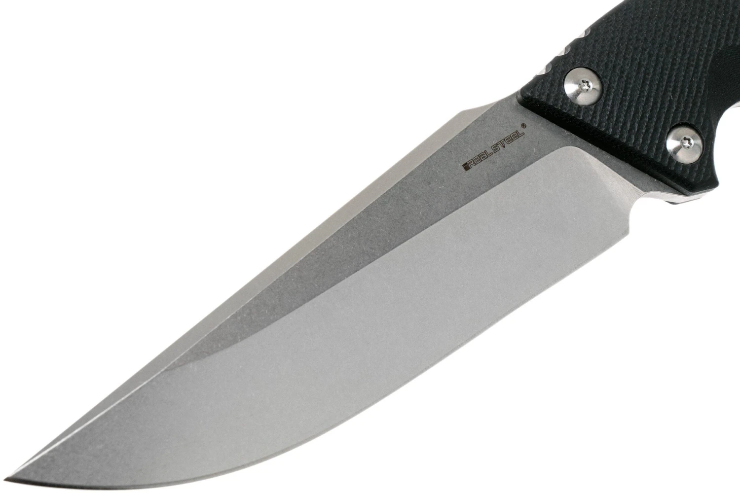 Das Real Steel Sorrow ist ein großes, robustes Survivalmesser. Designer Jakub Wieczorkiewicz von Poltergeist Design hat mit dem Sorrow ein richtiges Arbeitstier entwickelt. Die große Klinge ist aus D2-Stahl. Dies ist eine widerstandsfähige Stahlsorte, die auch lange scharf bleibt. Der Griff ist aus G10 gefertigt, einem starken Material, das viel Halt bietet.