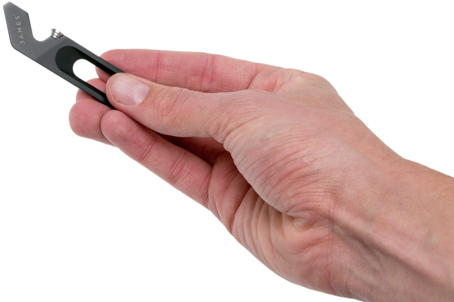 Das The James Brand Halifax ist ein Schlüsselanhänger aus Titan, der mit ein paar praktischen Tools ausgestattet ist. Das Ende des Halifax ist gleichzeitig Schraubendreher und Brecheisen, die Spitze kannst Du prima als Schaber benutzen um beispielsweise Schmutz zu entfernen. Im Griff ist ein innovativer Flaschenöffner integriert. Die kleine Stahlplatte ist austauschbar. Sie ist mit einer Schraube am Griff fixiert und kann ganz einfach ausgetauscht werden. Da diese Scheibe aus gehärtetem rostfreiem Stahl gefertigt ist, verschleißt sie weniger schnell als das Titan. Sehr praktisch, wenn Du Dir am Ende eines anstrengenden Tages ein kaltes Bier gönnen möchtest! Der Griff ist aus nur einem Stück Titan gefertigt und daher besonders robust. Ein bemerkenswertes Detail ist, dass das Halifax in einer wasserdichten Plastiktüte für Dein Handy geliefert wird. Da haben die Leute von The James Brand wieder gut mitgedacht!