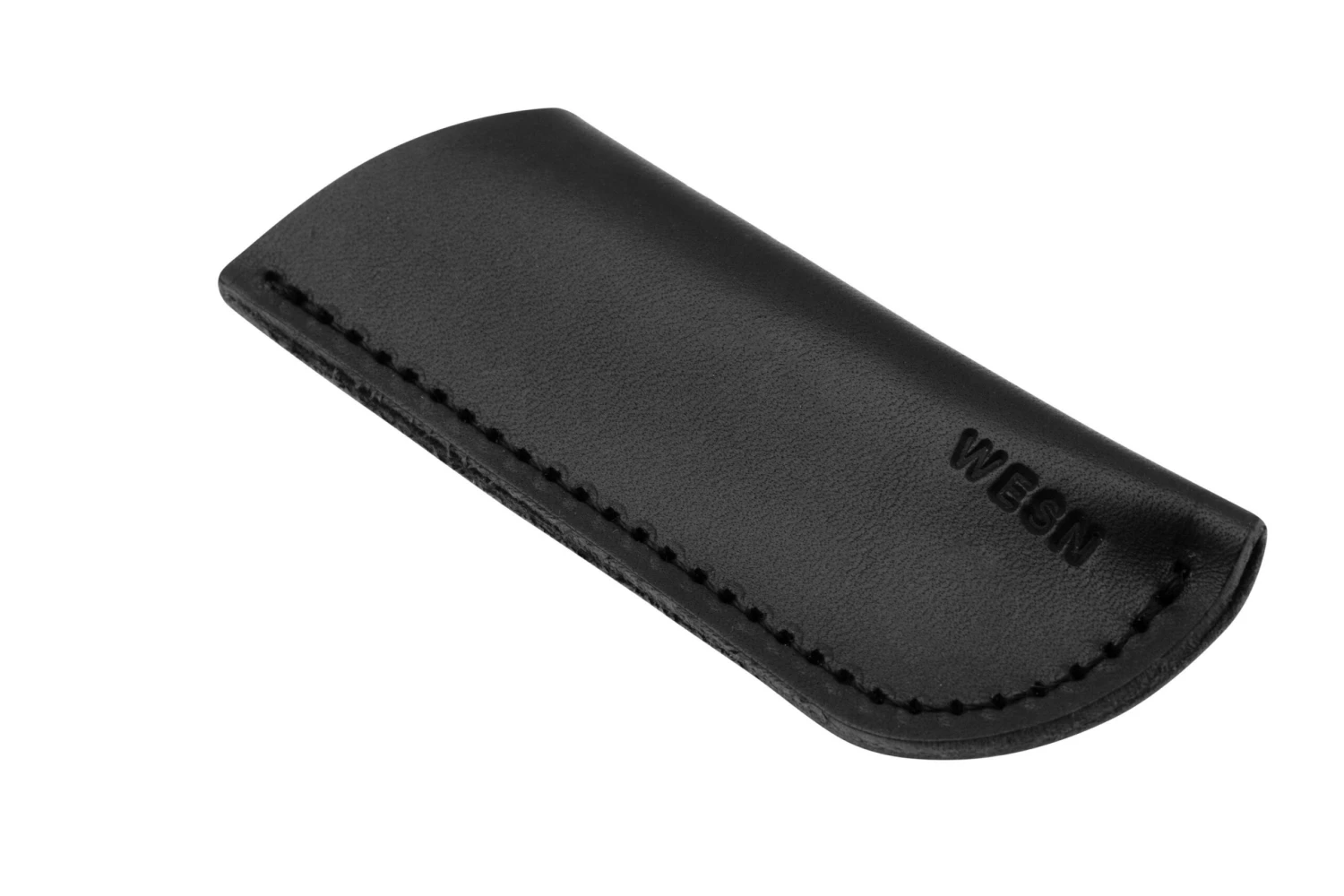 Die WESN Samla Leather Sheath Black SN16-0 ist eine einfache, unauffällige Lederscheide für das WESN Samla. Die Lederscheide ist seitlich mit weißen Nähten gestickt und sauber verarbeitet. Das Leder ist 1,2 mm dick und hat einen leichten Glanz. Die Lederscheide besitzt keine Druckknöpfe, allein durch Reibung wird das WESN Samla in der Scheide gehalten.